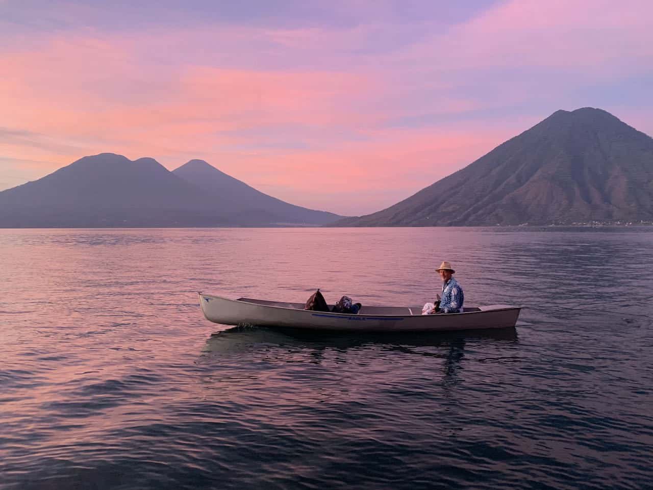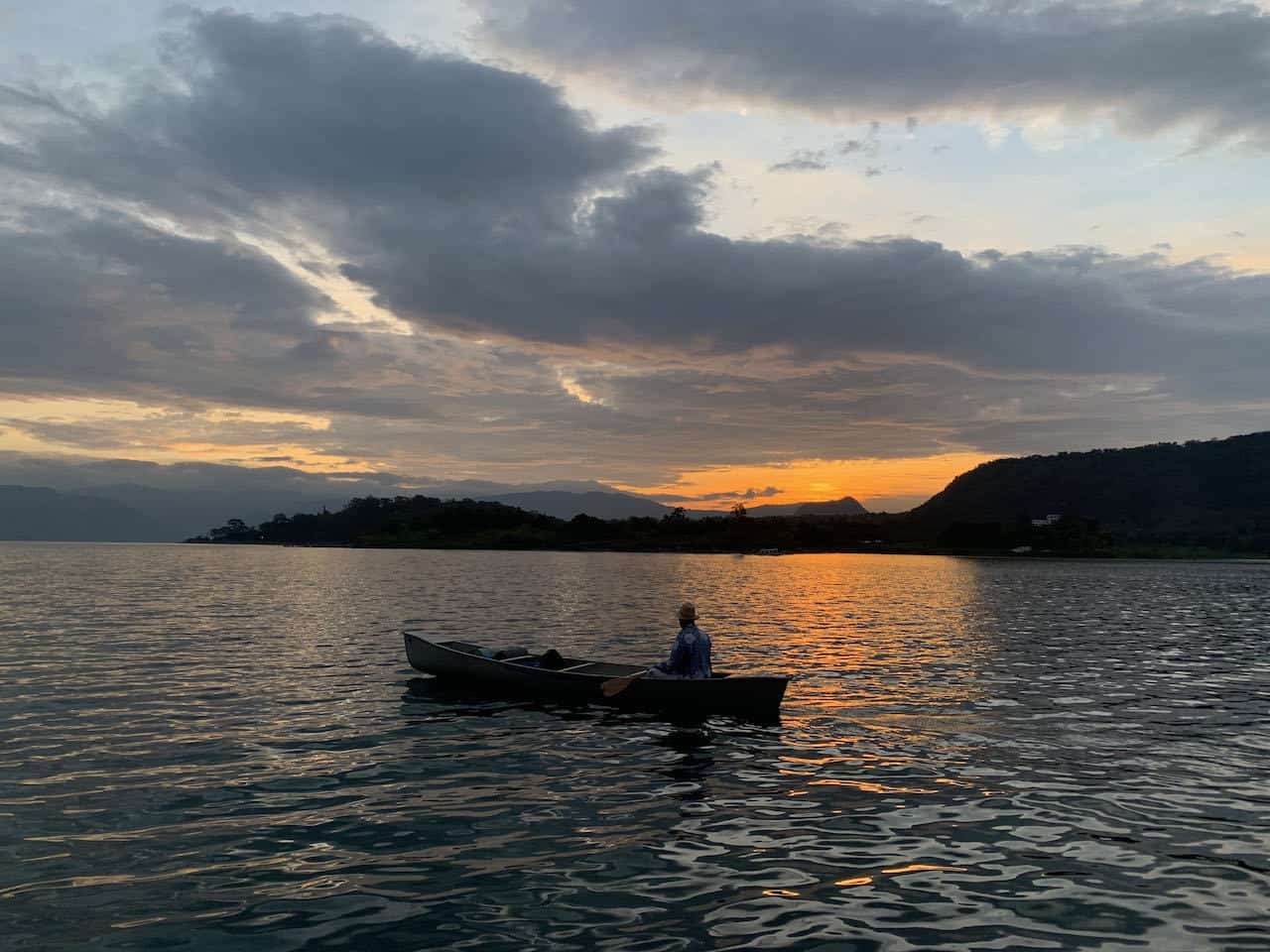 The final day was again calm. We were up at 4am, pulling the canoe down to the water in the dark, and we were on the water by 5:15am. A beautiful sunrise set the tone for the morning as we paddled past Tzununá, Jaibalito, and Santa Cruz toward Pana.