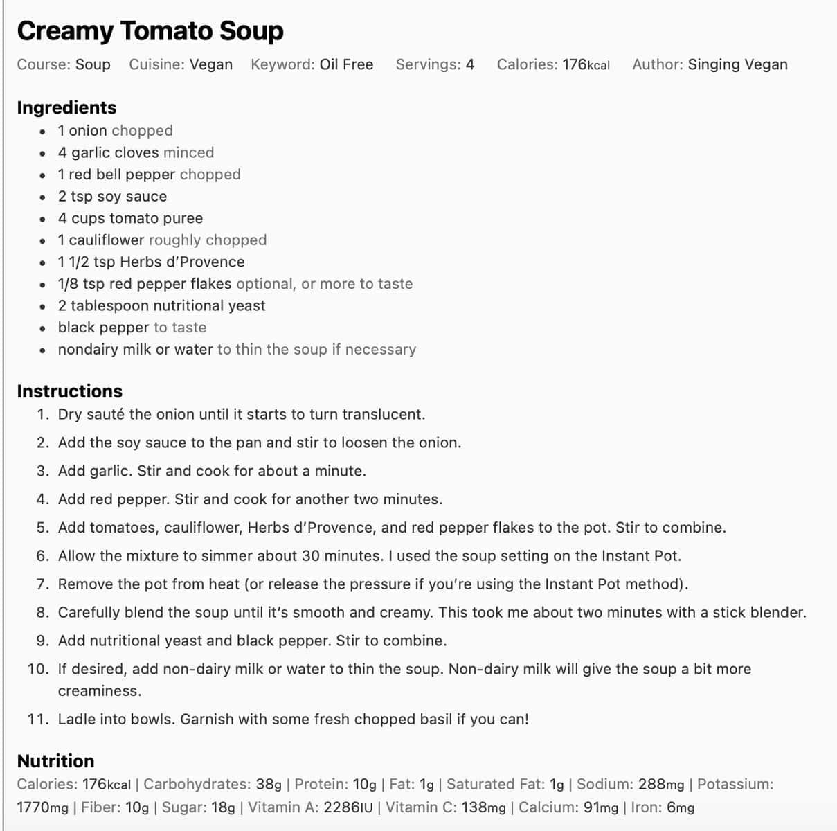 Creamy Tomato Soup (Vegan, Oil-Free)