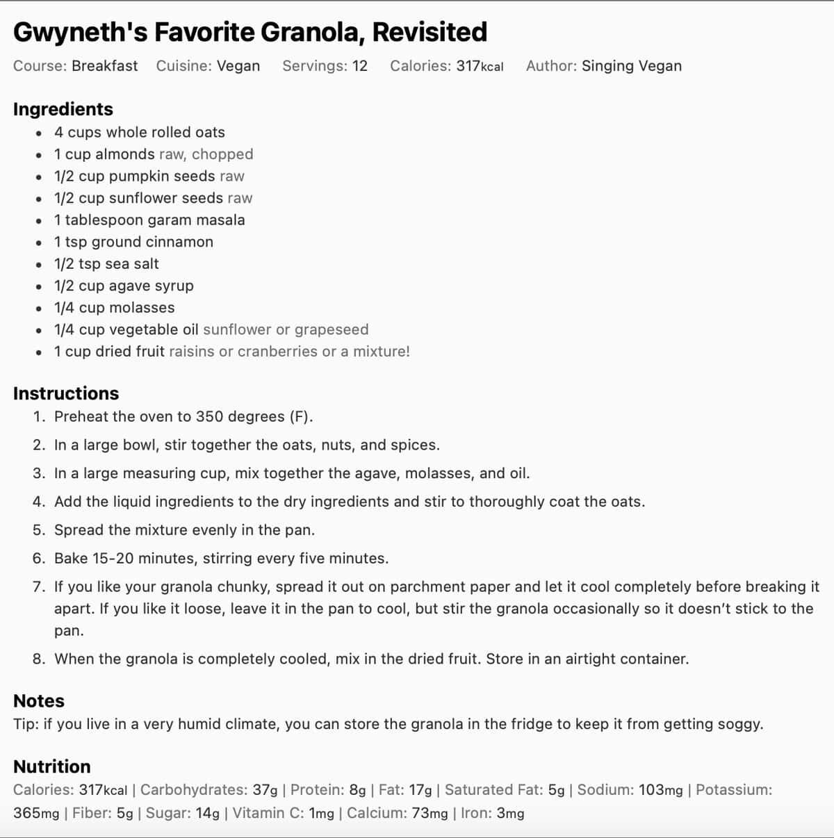My husband loves granola: he would happily eat it every day. I’ve made granola before, but this revised version of Gwyneth’s granola is much simpler and, quite frankly, the best granola I’ve ever had.