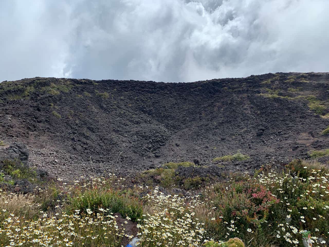We reached our campsite at about 2:30pm. One of the reasons we planned a weekday hike is that on weekends there can be a lot of people up there vying for the best campsite. Fortunately, we had the summit to ourselves. The campsite is just a few meters down from the top on the south side, on the edge of the crater, and is protected from the wind.