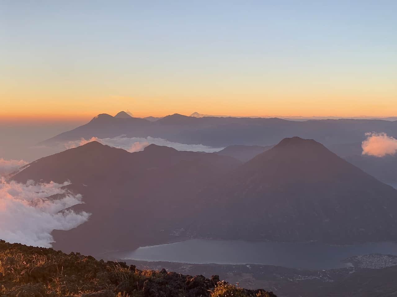 We spent the afternoon watching the clouds rise up from the Pacific coast (which in Guatemala is south). Sunset gave us a lovely view of the clouds and several other volcanoes in the distance, including Tajumulco–the highest peak in Central America–at the Mexican border.