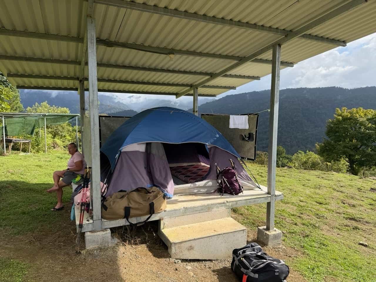 We finished in the camp on indigenous land at Tsinikicha. The camp had the tents on platforms with roofing and mattresses that made for a comfortable camping night.