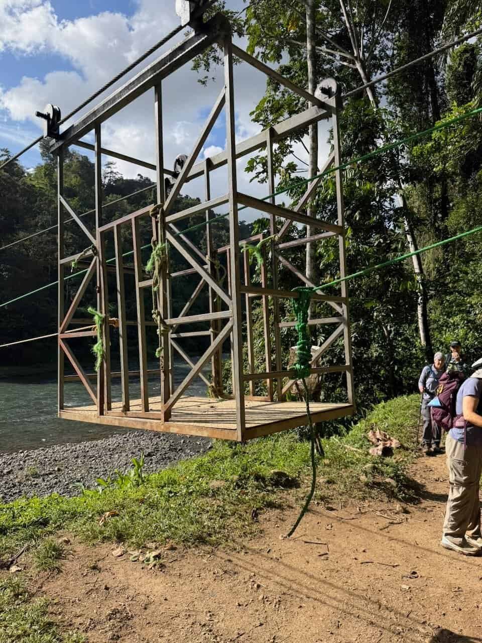 After a lunch stop we continued down to the Rio Pacuare. The method of crossing this river is a manual cable car. Our guides went first, then hauled the rest of us across two at a time. It was a blast for us and a lot of hard work for our guides.