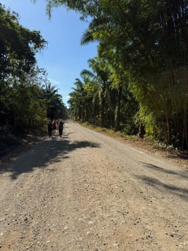 The middle part of the morning took us through palm plantations. The final 5km are on roads and very hot.