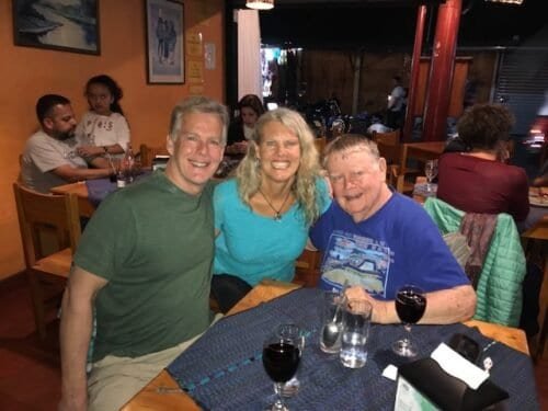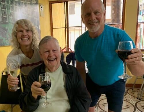 In 2016 Dad came to live with me in Guatemala for the last eight years of his life. I became his caregiver, and in some ways those years gave us a closeness we’d spent decades working toward. He became a fixture in Panajachel, sang in our local choral group, and often came to hear Mark and me perform at our restaurant gigs.