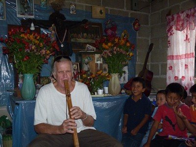 Duende always carried his Native American flute in his bag. He offered his songs of healing to the lake. He blessed my home with his flute’s song. He wanted to teach local children to play, and had wooden flutes made in Santiago Atitlan to give to the children.