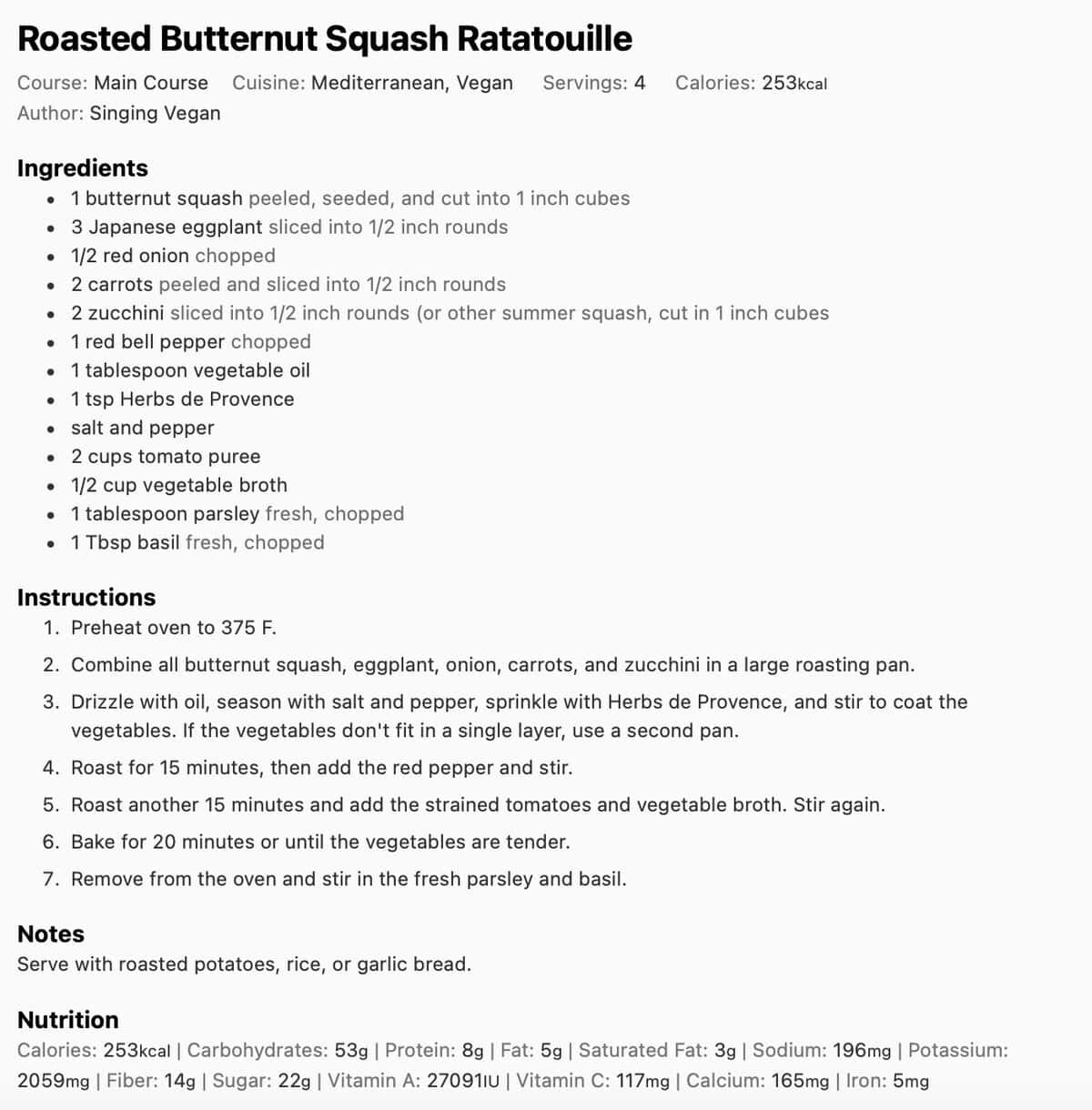 Years ago, even before I went vegan, I regularly made a roasted butternut squash ratatouille. I don’t even remember where the recipe came from, but it was always a hit with guests.