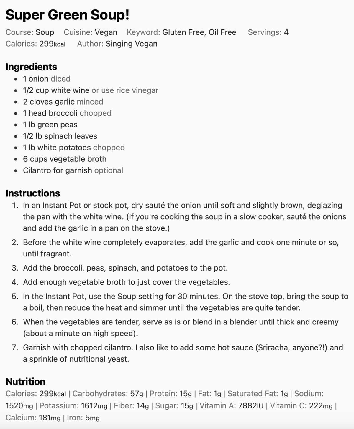 This soup is a powerhouse of nutrition. Tons of greens and plant-based protein! It cooks quickly (especially if you use an Instant Pot or other pressure cooker) or is amazing in a slow cooker or on the stove.